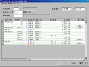元帳の中の知りたい項目(行)を選択すれば仕訳伝票までズームします。 |